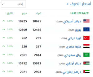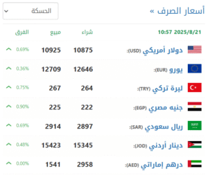 في سوق الحسكة (10875 شراء – 10925 بيع).