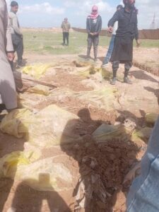 عُثر اليوم السبت 28 آذار 2026 على مقبرة جماعية تحتوي على رفات تسع جثث بالقرب من سجن الكم الصيني في منطقة الشدادي جنوب محافظة الحسكة.