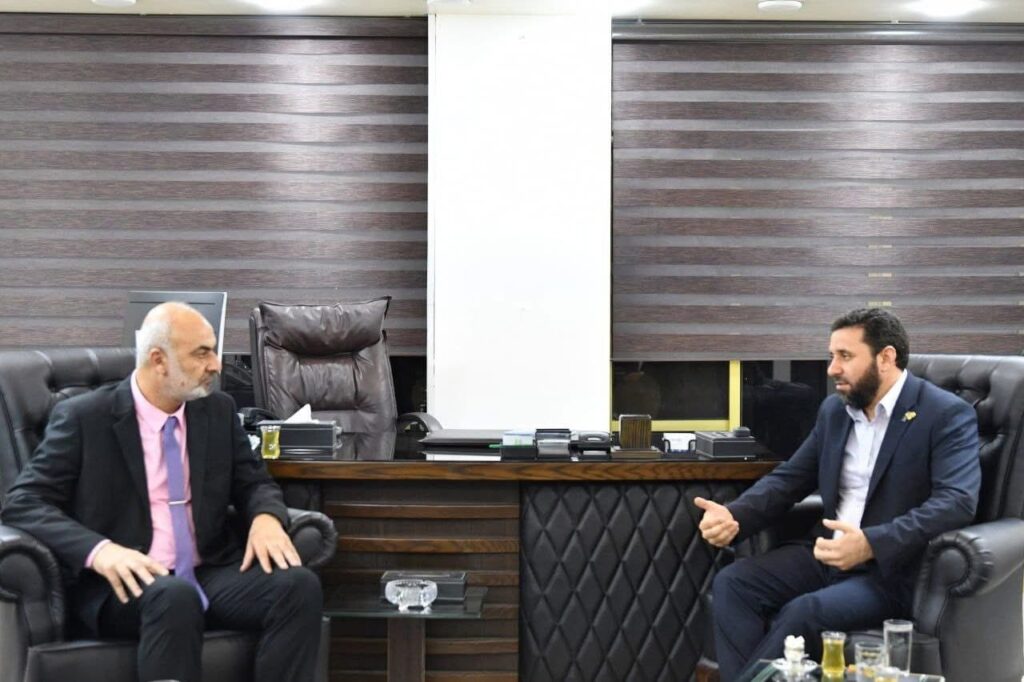 بحث نائب وزير الاقتصاد والصناعة لشؤون التجارة الداخلية ماهر الحسن مع محافظ دير الزور غسان أحمد احتياجات المحافظة وسبل تطوير واقعها الاقتصادي والاستثماري بالشراكة مع القطاع الخاص.