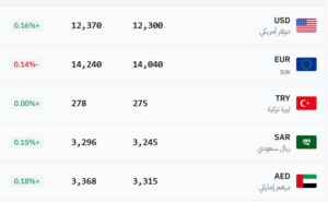 في سوق سوريا – عام (12,300 شراء – 12,370 بيع).