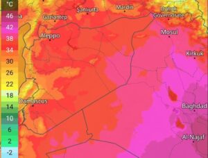 وفي محافظة دير الزور، توقعت النشرة الجوية أن تسجل درجات الحرارة 39° نهاراً و26° ليلاً، وسط أجواء صيفية مشمسة حارة نسبياً، ورياح غربية معتدلة السرعة بحدود 20 كم/ساعة تترافق بهبات نشطة تتراوح بين 35 و45 كم/ساعة.