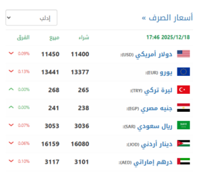 في سوق إدلب (11400 شراء – 11450 بيع).