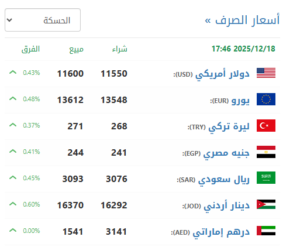 في سوق الحسكة (11550 شراء – 11600 بيع).