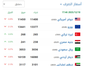 سجّل سعر صرف الليرة السورية مقابل الدولار اليوم الجمعة 19/12/2025: