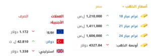 وسجّل سعر غرام الذهب (1,210,000 ليرة سورية_عيار18)، و(1,411,000 ليرة سورية_عيار21).