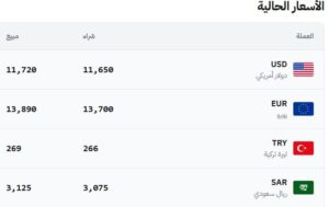 في سوق سوريا – عام (11,650 شراء – 11,720 بيع).