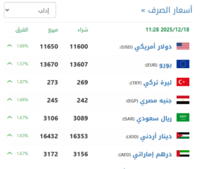 في سوق إدلب (11500 شراء – 11550 بيع).
