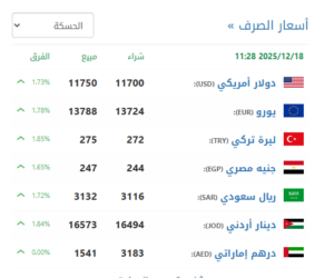 في سوق الحسكة (11700 شراء – 11750 بيع).