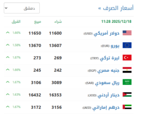 سجّل سعر صرف الليرة السورية مقابل الدولار اليوم الأربعاء 17/12/2025: