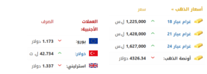 وسجّل سعر غرام الذهب (1,223,000 ليرة سورية_عيار18)، و(1,426,000 ليرة سورية_عيار21).