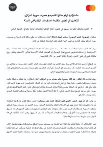 أعلنت شركة ماستر كارد عن توقيع مذكرة تفاهم تاريخية مع مصرف سورية المركزي بهدف التعاون في تطوير البنية التحتية لنظم المدفوعات الوطنية وتعزيز الشمول المالي في البلاد.