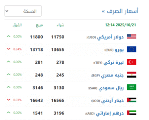 في سوق الحسكة (11750 شراء – 11800بيع).
