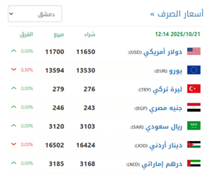 في سوق دمشق (11650 شراء – 11700 بيع).