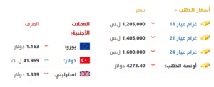 وسجّل سعر غرام الذهب (1,205,000 ليرة سورية_عيار18)، و(1,405,000 ليرة سورية_عيار21).
