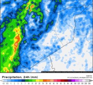 وبحسب تحليل النماذج العددية، يكون الطقس اليوم غائماً بصفة عامة، مع فرص لهطول زخات مطر متفرقة في عدد من المحافظات. كما تتحول الأجواء إلى غائمة ماطرة على الساحل وشمال غرب البلاد اعتباراً من ساعات الفجر والصباح، تزامناً مع اشتداد تأثيرات المنخفض الجوي.