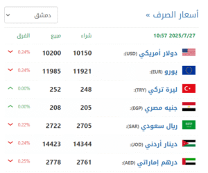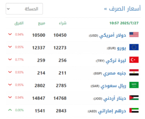 في سوق الحسكة (10450 شراء – 10500 بيع).