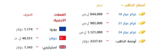 وسجّل سعر غرام الذهب (844000ألف ليرة سورية_عيار18)، و(985000ألف ليرة سورية_عيار21).