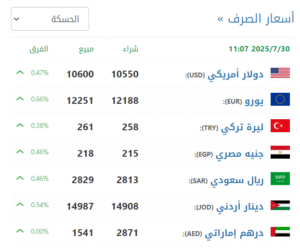 في سوق الحسكة (10550 شراء – 10600 بيع).