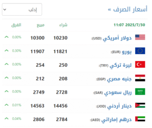 في سوق إدلب (10230شراء – 10300 بيع).