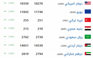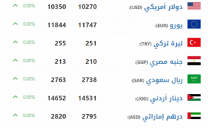 في سوق إدلب (10270 شراء – 10350 بيع).