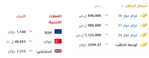 وسجّل سعر غرام الذهب (846 ألف ليرة سورية_عيار18)، و(986ألف ليرة سورية_عيار21).