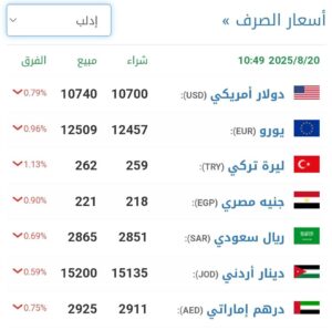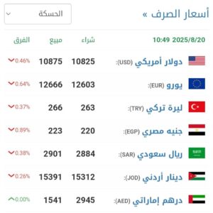 في سوق الحسكة (10800 شراء – 10875 بيع).