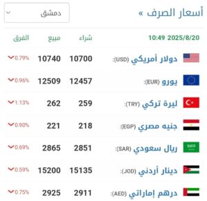 سجّل سعر صرف الليرة السورية مقابل الدولار اليوم الأربعاء: