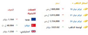 وسجّل سعر غرام الذهب (869000 ليرة سورية_عيار18)، و(1013000 ليرة سورية_عيار21).
