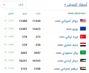 في سوق إدلب (11430 شراء – 11480 بيع).
