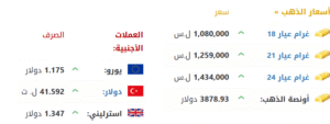 وسجّل سعر غرام الذهب (1080000 ليرة سورية_عيار18)، و(1259000 ليرة سورية_عيار21).