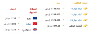 وسجّل سعر غرام الذهب (1148000 ليرة سورية_عيار18)، و(1339000 ليرة سورية_عيار21).