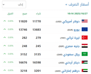 في سوق إدلب (11770 شراء – 11820 بيع).