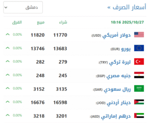 سجّل سعر صرف الليرة السورية مقابل الدولار وجميع العملات الأجنبية اليوم الاثنين: