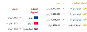 وسجّل سعر غرام الذهب (1,172,000 ليرة سورية_عيار18)، و(1,367,000 ليرة سورية_عيار21).