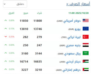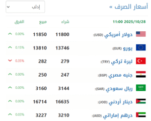 في سوق إدلب (11800 شراء – 11850 بيع).