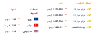 وسجّل سعر غرام الذهب (1,124,000 ليرة سورية_عيار18)، و(1,311,000 ليرة سورية_عيار21).