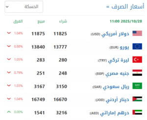 في سوق الحسكة (11825 شراء – 11875 بيع).