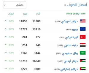 في سوق إدلب (11800 شراء – 11850 بيع).