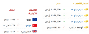 وسجّل سعر غرام الذهب (1,176,000 ليرة سورية_عيار18)، و(1,371,000 ليرة سورية_عيار21).