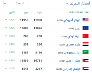 في سوق الحسكة (11900 شراء – 11950 بيع).
