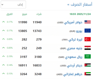 في سوق إدلب (11940 شراء – 11990 بيع).