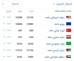 في سوق الحسكة (12150 شراء – 12200 بيع).