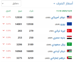 في سوق إدلب (11980 شراء – 12030 بيع).