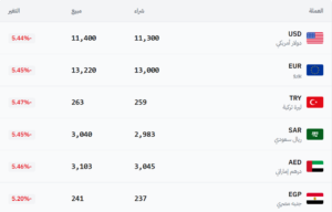 في سوق سوريا – عام (11,300 شراء – 11,400 بيع).