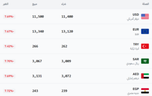 في سوق الحسكة (11,400 شراء – 11,500 بيع).