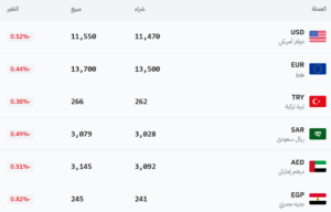 في سوق سوريا – عام (11,470 شراء – 11,550 بيع).