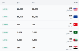 في سوق الحسكة (11,800 شراء – 11,850 بيع).
