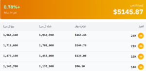 وسجّل سعر غرام الذهب (1,458,000 ليرة سورية_عيار18)، و(1,701,000 ليرة سورية_عيار21).