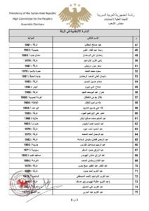 أعلنت اللجنة العليا لانتخابات مجلس الشعب السوري، اليوم الإثنين، القائمة النهائية لأعضاء الهيئتين الناخبتين في الدائرتين الانتخابيتين الرقة – الطبقة بمحافظة الرقة.