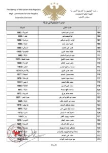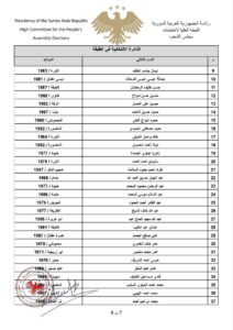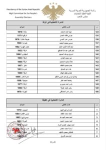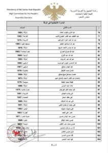 وأوضحت اللجنة أن القائمة النهائية لأعضاء الهيئات الناخبة في الدوائر الانتخابية الرقة – الطبقة بمحافظة الرقة تتكون وفق الآتي: